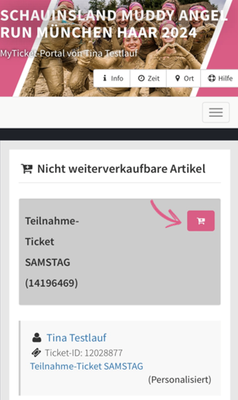 In deinem Ticketportal kannst du über „Weiterverkauf“ dein Ticket im Resale Shop verkaufen.