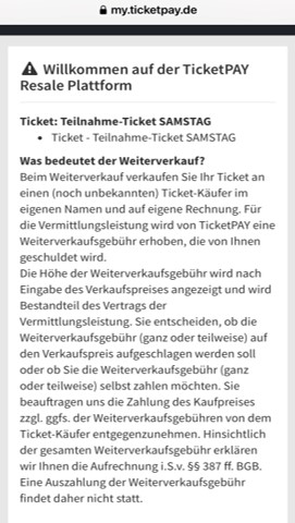 3. Du wirst auf die TicketPAY Resale Plattform weitergeleitet.